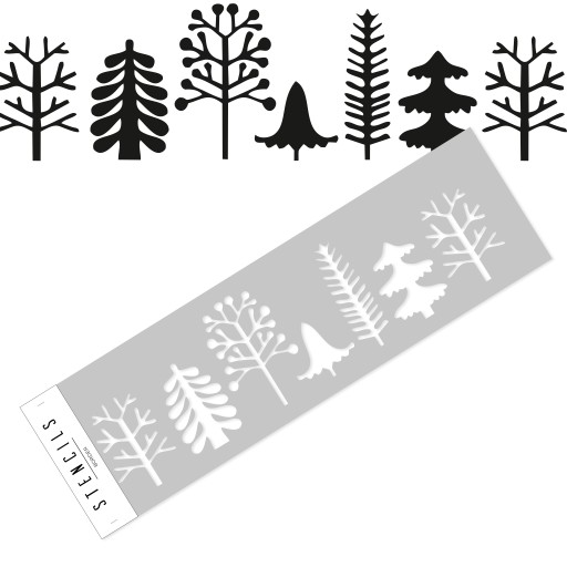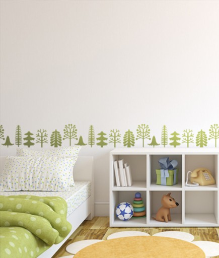 Szablon Border “Trees” to gromadka ustawionych w szeregu zabawnych drzew, które pięknie ozdobią pokój Twojego Dziecka.