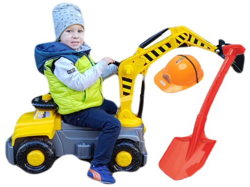 Zabawka dwufunkcyjna -jako jeździk –dziecko podnosi ramię koparki do góry, obraca ramię w kierunku tyłu jeździka, a następnie siada na siedzisku przodem do kierownicy. W zależności od kierunku odpychania nogami jedzie w przód lub w tył -jako koparka - dziecko podnosi ramię koparki do góry , obraca ramię w kierunku tyłu jeździka, a następnie siada na siedzisku tyłem do kierownicy. Przy pomocy rąk dziecko intuicyjnie steruje ruchomą dźwignią i łyżką koparki. W tylnej części zabawki znajduje się hak, który umożliwia holowanie, zaczepienie przyczepy lub innego pojazdu