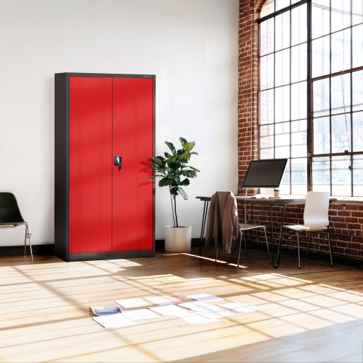 SOLIDNA METALOWA SZAFA BIUROWA "JAN H" MARKI JAN NOWAK – antracytowo-czerwona