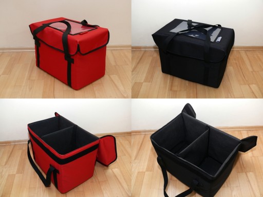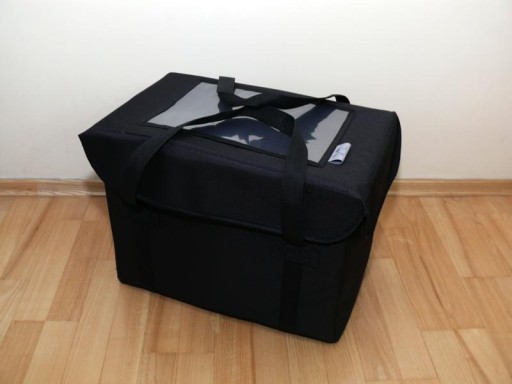 - Specjalną, grubą (minimum 20mm) termoizolacyjną piankę techniczną - nie jest to pianka tapicerska, która tylko "pompuje" torbę nie dając żadnej izolacji.