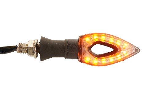 Kierunkowskaz jest mały więc mieści się w miejscach gdzie niemożliwe jest zastosowanie większego kierunkowskazu a jego standardowe mocowanie zapewnia łatwy montaż w wielu pojazdach (skutery, motorowery, quady-atv, motocykle).