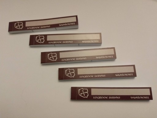 Wymiary logbooka to 10,5 x 1,6 cm, dzięki czemu pasują do większości pojemników PET oraz do innych ukryć.