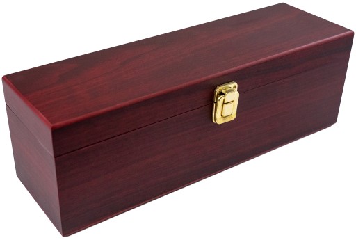 Wszystkie akcesoria do serwowania wina zostały umieszczone pod wieczkiem skrzyneczki w grubej, twardej gąbce, natomiast sama skrzyneczka została od wewnątrz wyściełana czerwoną tkaniną oraz wyposażona w eleganckie zapięcie.