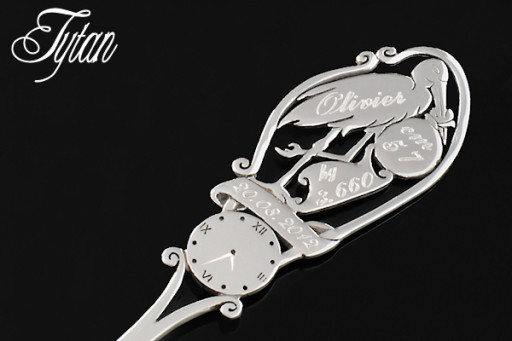 Na łyżeczce jest miejsce do wygrawerowania ciężaru, wzrostu, imienia oraz daty urodzin.