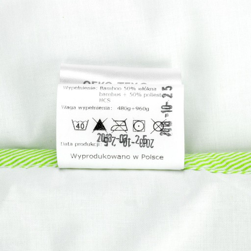 - wypełnienie kołdry to 50% włókno bambusowe i 50% poliester HCS