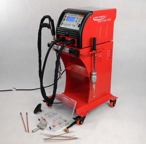 Mikroprocesorowo sterowana zgrzewarka WELDMAN SPOTTER 7500 służy do wyciągania, zgrzewania jednostronnego, łatania i rozgrzewania elektrodą węglową blach. Zalecany jest w szczególności do napraw karoserii samochodowych, w zakładach blacharskich i blacharsko-lakierniczych.