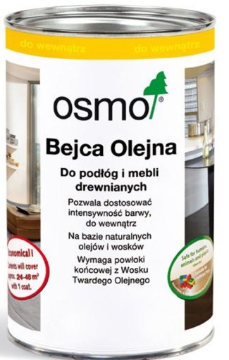 Bejcą olejną Osmo można szybko i łatwo nadać podłodze drewnianej zarówno delikatny odcień, jak i intensywny, wyrazisty kolor. W celu osiągnięcia transparentnej powłoki, bejcę olejną nanosi się tylko 1 raz, natomiast intensywne zabarwienie powierzchni otrzymujemy nanosząc 2 warstwy. Dzięki naturalnym olejom i woskom, Bejca olejna pozwala otrzymać piękne, równomierne i harmonijne zabarwienie bez zakładek.