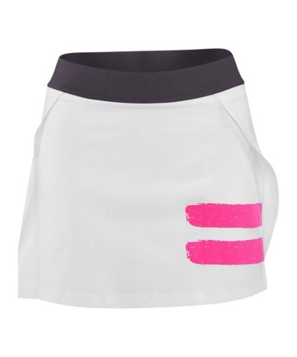 Zwiewna spódniczka wykonana z "oddychającego" materiału Fiber Dry, który doskonale odprowadza pot z dala od skóry. Miękka, lekka tkanina jest łatwa w praniu i szybkoschnąca. Elastyczny, szeroki ściągacz w pasie oraz dwuczęściowy krój pozwalają na odpowiednie dopasowanie dając pełną swobodę ruchów. Płaskie szwy nie powodują otarć i podrażnień. Wewnętrzne, elastyczne spodenki zwiększają komfort użytkowania.