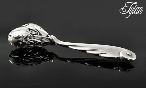 Grzechotka wyjątkowo duża i precyzyjnie wykonana w całości ze srebra próby 0,925.