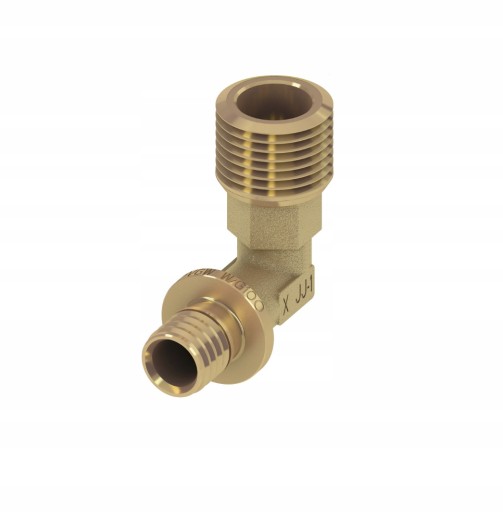 Kolano mosiężne TECEflex do wielowarstwowej rury kompozytowej.