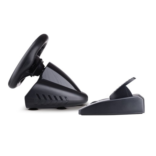 W zestawie znajduje się 12 przycisków funkcyjnych oraz 4-kierunkowy dualpad. Dołączone pedały zapewniają pełny realizm każdej zabawy.