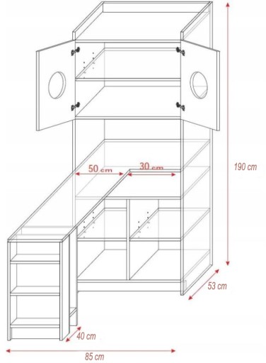 - wysokość: 190 cm (wysokość biurka 75 cm)