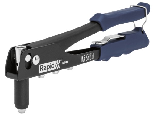 Nitownica dźwigniowa RP10 wraz z wyborem 100 szt. nitów zrywalnych w opak. blistrowym. Załączone nity: 25 szt 3.2 × 8 mm 25 szt 4.0 × 10 mm 25 szt 4.0 × 14 mm 25 szt 4.8 × 12 mm
