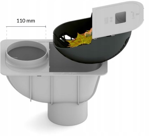 Stanowi element łączący system rynnowy z kanalizacją deszczową o średnicy 110mm