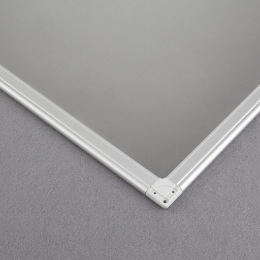 -Rama wykonana z profilu aluminiowego w kolorze srebrnym, wykończona eleganckimi, popielatymi narożnikami