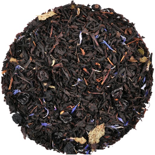 Herbata czarna liść, owoc czarnej porzeczki 5%, owoc aronii, płatki bławatka, aromat