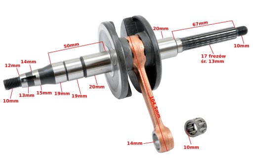 NOWY WAŁ Z ŁOŻYSKIEM IGIEŁKOWYM DO SKUTERA 2T