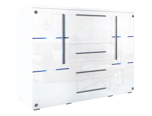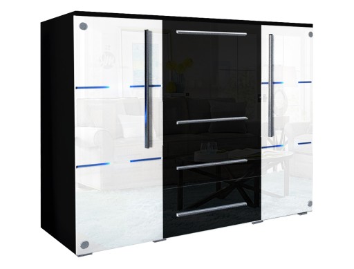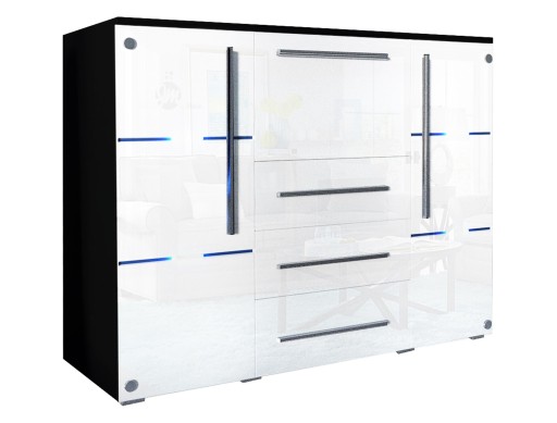 Komoda BARI z oświetleniem LED - fronty w połysku + szkło lacobel