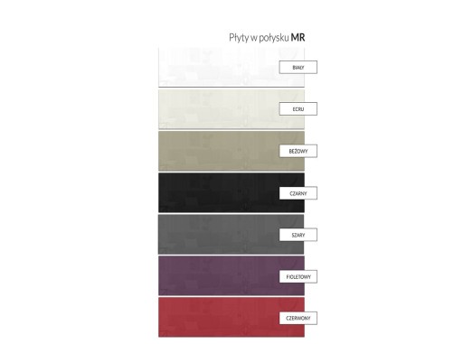 - Fronty wykonane są z płyty meblowej MDF na wysoki połysk
