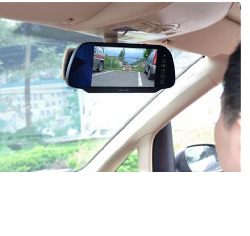 MONITOR 7 NA LUSTERKO + KAMERA COFANIA W RAMCE REJESTRACYJNEJ KOLOROWA
