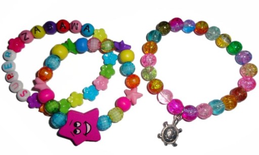 Wykonanie bransoletek jest niezwykle proste, wystarczy nawlec koraliki na gumkę a następnie zawiązać obydwa końce gumki. Modne obecnie zawieszki charms montujemy za pomocą ogniwek lub wykorzystując przekładki z uszkiem.