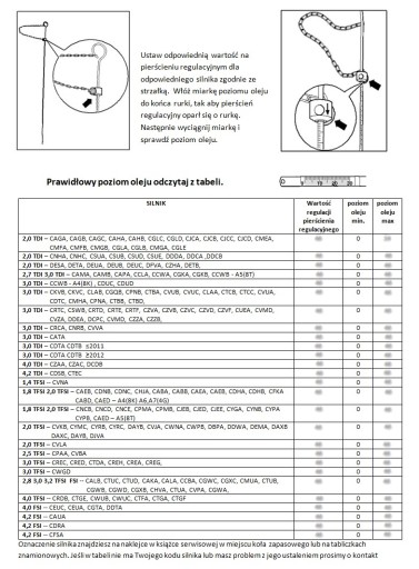 Do miarki poziomu oleju otrzymasz szczegółową instrukcję obsługi pomiaru do każdego silnika.