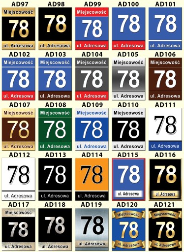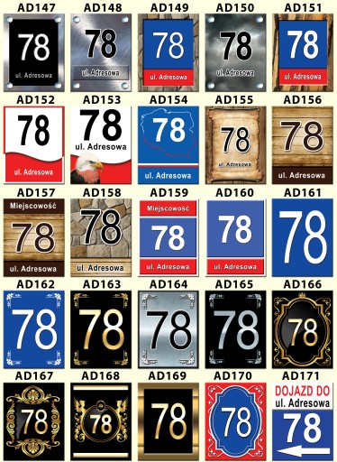 GOTOWE WZORY TABLICZEK ADRESOWYCH 40x30 cm, DRUKOWANYCH NA BIAŁYM DIBONDZIE 2mm.