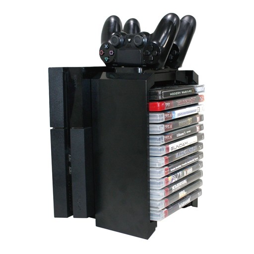 - Podstawka do PlayStation4, PlayStation 4 SLIM lub PlayStation 4 PRO + stojak na 12 gier oraz stacja ładowania na 2 pady