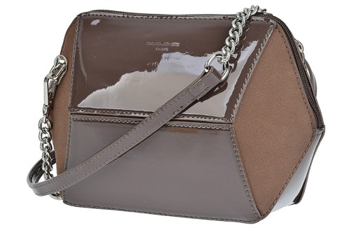 TOREBKA DAMSKA FIRMY DAVID JONES WYKONANA Z WYSOKOGATUNKOWEJ SKÓRY EKOLOGICZNEJ LAKIEROWANEJ W POŁĄCZENIU Z MIĘKKIM ZAMSZEM