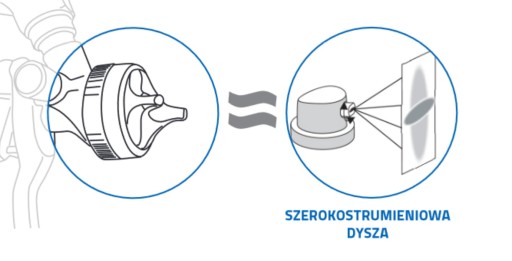 - szerokostrumieniowa dysza, której konstrukcja pozwala uzyskać strumień zbliżony do strumienia klasycznego pistoletu lakierniczego