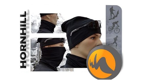 Kołnierz – czapka HORNHILL UNI posiada w górnej części gumo-sznurek (ze stoperkiem) po mocnym jego ściągnięciu i zawinięciu (pokazane jest to na jednym z poniższych zdj.) tworzy się czapka. Gumo-sznurek pozwala również regulować objętość kołnierza na szyi.