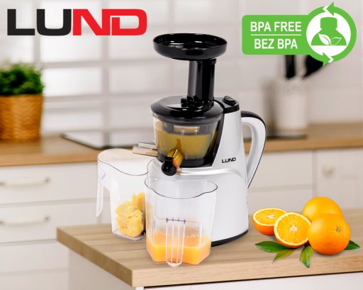 W wolnoobrotowej wyciskarce LUND z łatwością przygotujesz zdrowe, świeże i pełne witamin soki, koktajle mleczne i sorbety. Urządzenie posiada wszystkie niezbędne udogodnienia takie jak bieg wsteczny, nóżki antypoślizgowe i szczelna zatyczka „niekapek”.