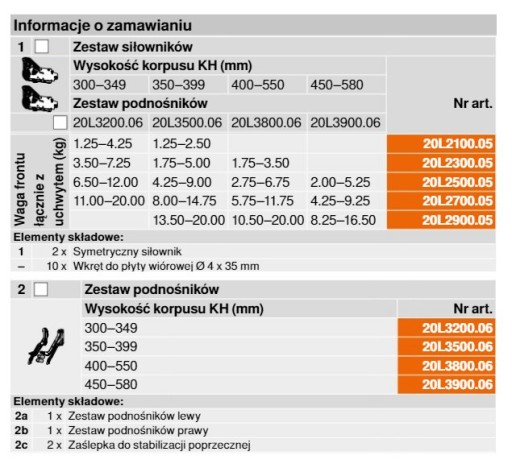 - 2x podnośnik 20L3200.06 (inne długości podnośników dostępne są na innych aukcjach)