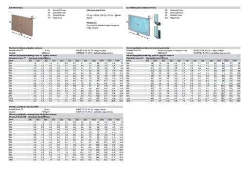 Poniżej pomocnicza tabela do określenia wagi frontu.