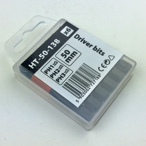HT-50-138 Końcówki wkrętakowe (Bity) [1/4"] [PH 1, 2, 3 x 50 mm, 6 szt.]
