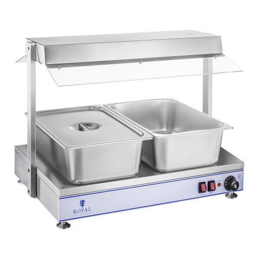 Podgrzewacz do potraw marki Royal Catering pozwoli na podgrzewanie różnego rodzaju potraw. Sprawdzi się jako wyposażenie hoteli, restauracji, firm cateringowych i bufetów serwujących potrawy dal większej ilości gości. Promienniki halogenowe nie tylko podgrzewają potrawy, ale również atrakcyjnie je oświetlają.