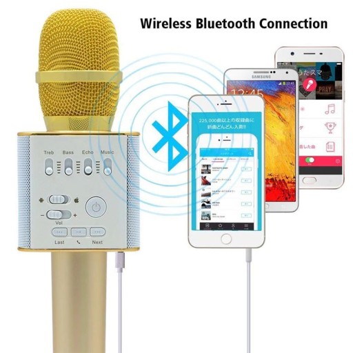-Bezprzewodowy mikrofon bluetooth pozwala na połączenie się ze smartfonami, tabletami lub telewizorami SMART TV. Kompatybilny z systemem operacyjnym Android lub iOS. Odtwarzanie muzyki przez wbudowane głośniki, nakładając jednocześnie nasz śpiew odbierany przez mikrofon.