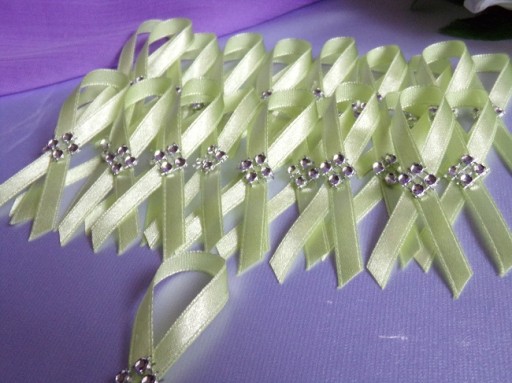 * 50 szt kotylionów dla Gości weselnych, wykonanych z jednej kolorowej wstążki i ozdobnych kryształków,
