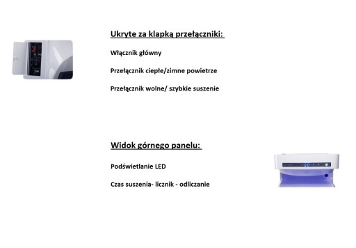 - Sterylna:- nie dotykasz suszarki podczas użytkowania