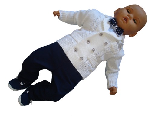 - koszulę typu body+spodnie+muszka+szelki+sweterek w stylu marynarki .