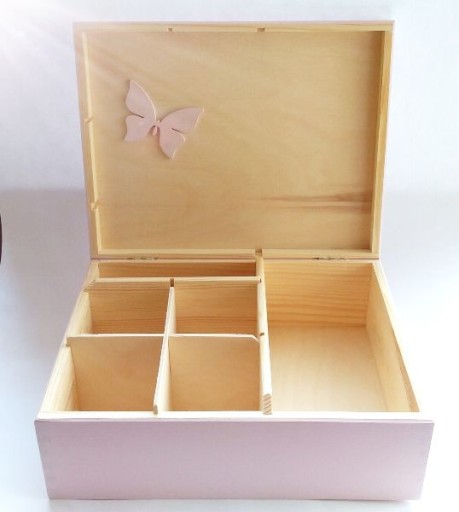 Dostępne dekory: motyle, serduszka, gwiazdki, baletnica, kwiatuszki. Wewnątrz ten sam motyw co na zewnątrz. Po zakupie proszę podać imię, kolor pudełka i dodatków.