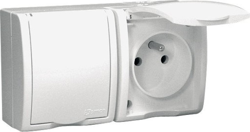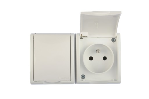 - NAZWA PRODUKTU/RODZAJ: gniazdo wtyczkowe podwójne z uziemieniem w wersji IP54 - klapka w kolorze białym