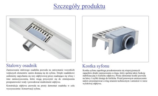* funkcjonalność - doskonałe odprowadzanie wody w prysznicach; ponadto estetyczny wygląd pozwalający na dopasowanie danego modelu do kompozycji w całej łazience