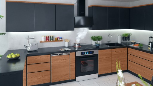 Połączenie niekonwencjonalnych kształtów z czarnym klasycznym kolorem sprawia, że okap wkomponuje się każde wnętrze.