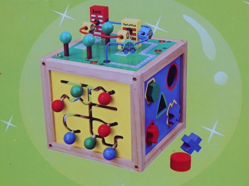 drewniane CENTRUM EDUKACJI DUŻA KOSTKA EDUKACYJNA 5 w 1