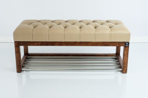 ŁAWKA CHESTERFIELD Eko-skóra Beż 2523 model LPP-4 / Gatunek Drewna Olcha / produkowana w rozmiarach od 45 cm do 120 cm