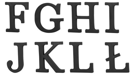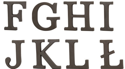 W kolorze czarnym i brązowym dostępny jest cały alfabet wraz z ogonkami (z wyjątkiem Litery X oraz Q)