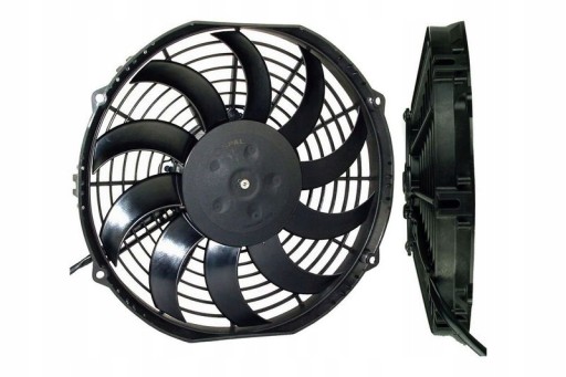 Oryginalny wentylator firmy SPAL skonfigurowany jako tłoczący-montaż przed chłodnicą. Doskonale sprawdza się jako wentylator dodatkowy w motorsporcie. Znajduje bardzo szerokie zastosowanie od samochodów osobowych po maszyny budowlane.