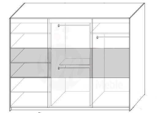 - Szafa wyposażona jest w wygodne półki oraz drążki na wieszaki, a na froncie posiada duże lustro