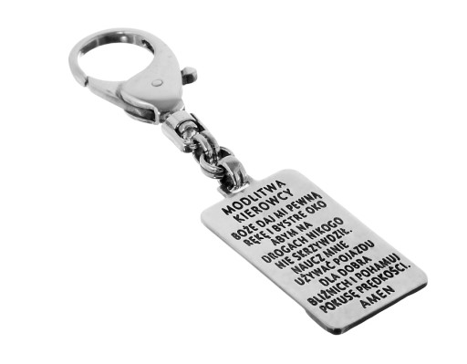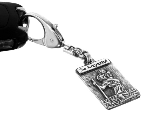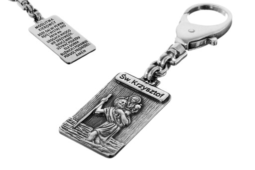 Srebrny brelok do kluczy Święty Krzysztof z modlitwą dla kierowcy